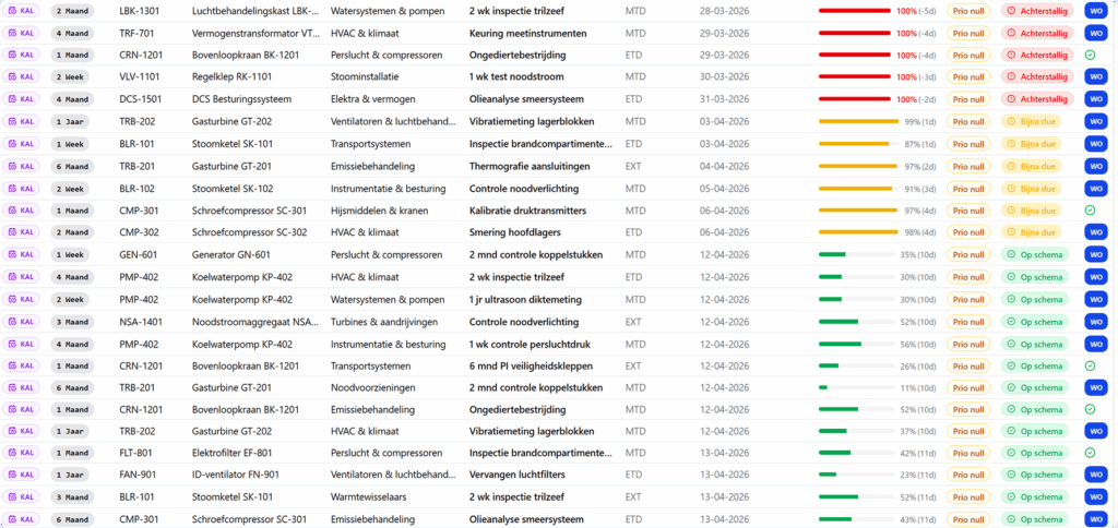 At a glance, you can see how far along each maintenance round is. Clear progress bars show the completion percentage per round, so you immediately know what needs attention — without having to search for it.